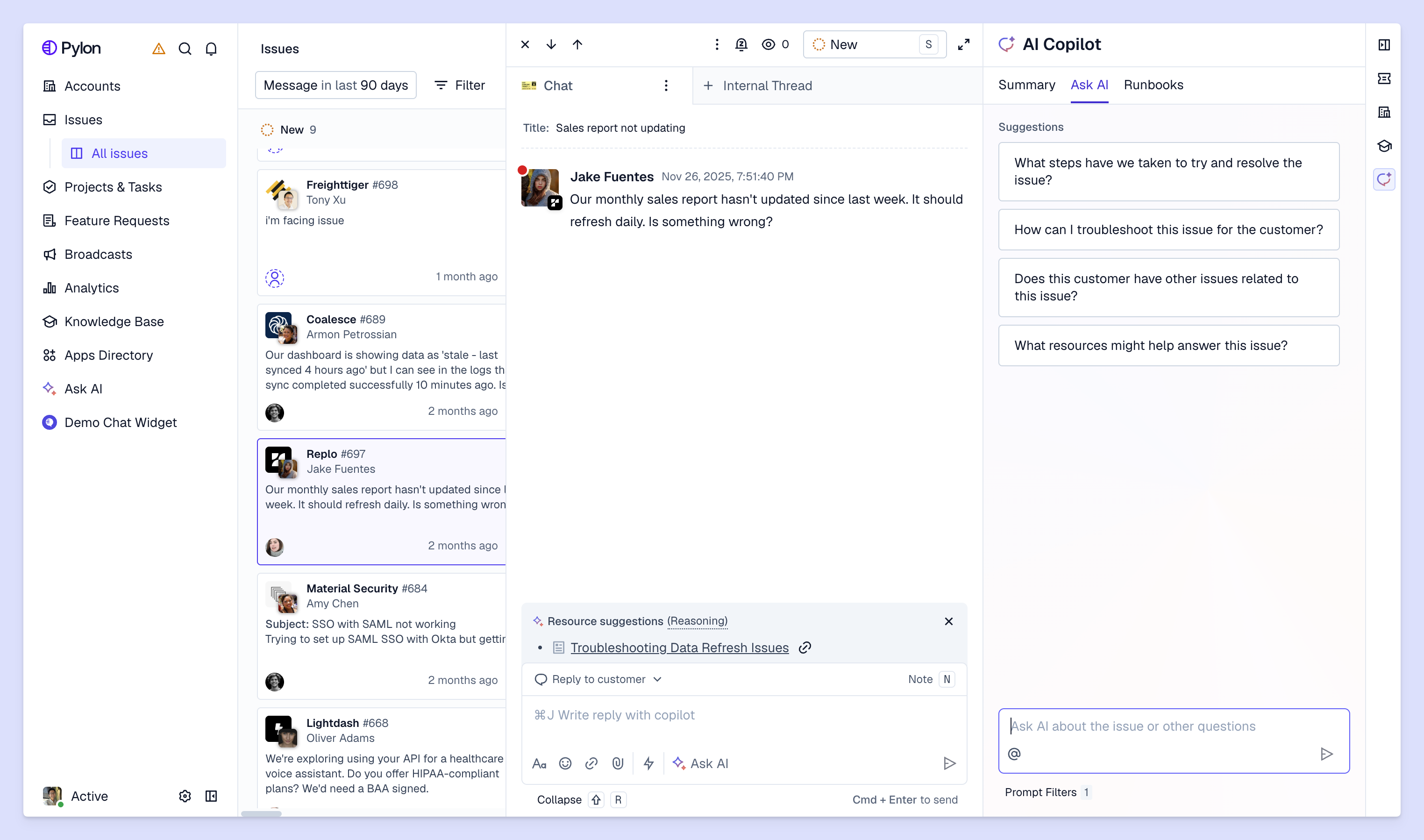- With top platforms like Pylon, you can use AI to automatically route tickets, draft responses, and help you troubleshoot issues.