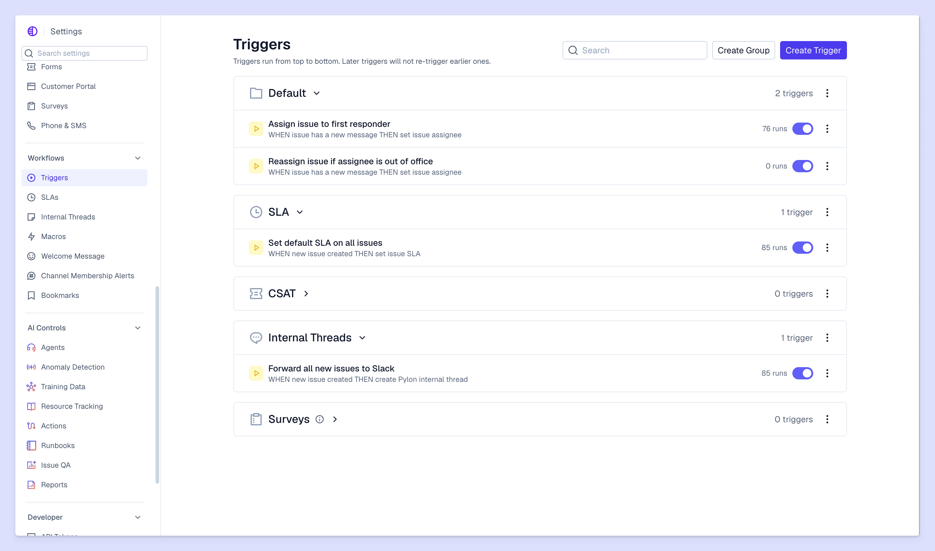 Modern support platforms like Pylon can help you manage escalations and integrate directly with Slack, Microsoft Teams, and email — so your team receives alerts where they already work.