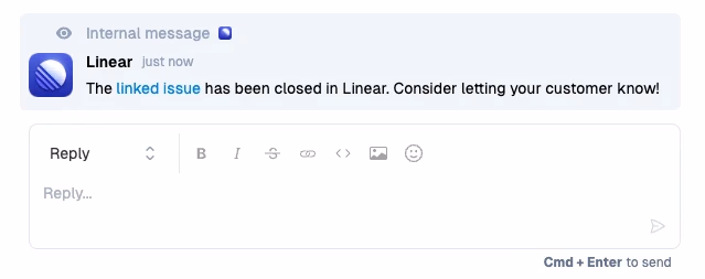 🔄 Receive live updates on the engineering issue from straight on the customer issue in Pylon