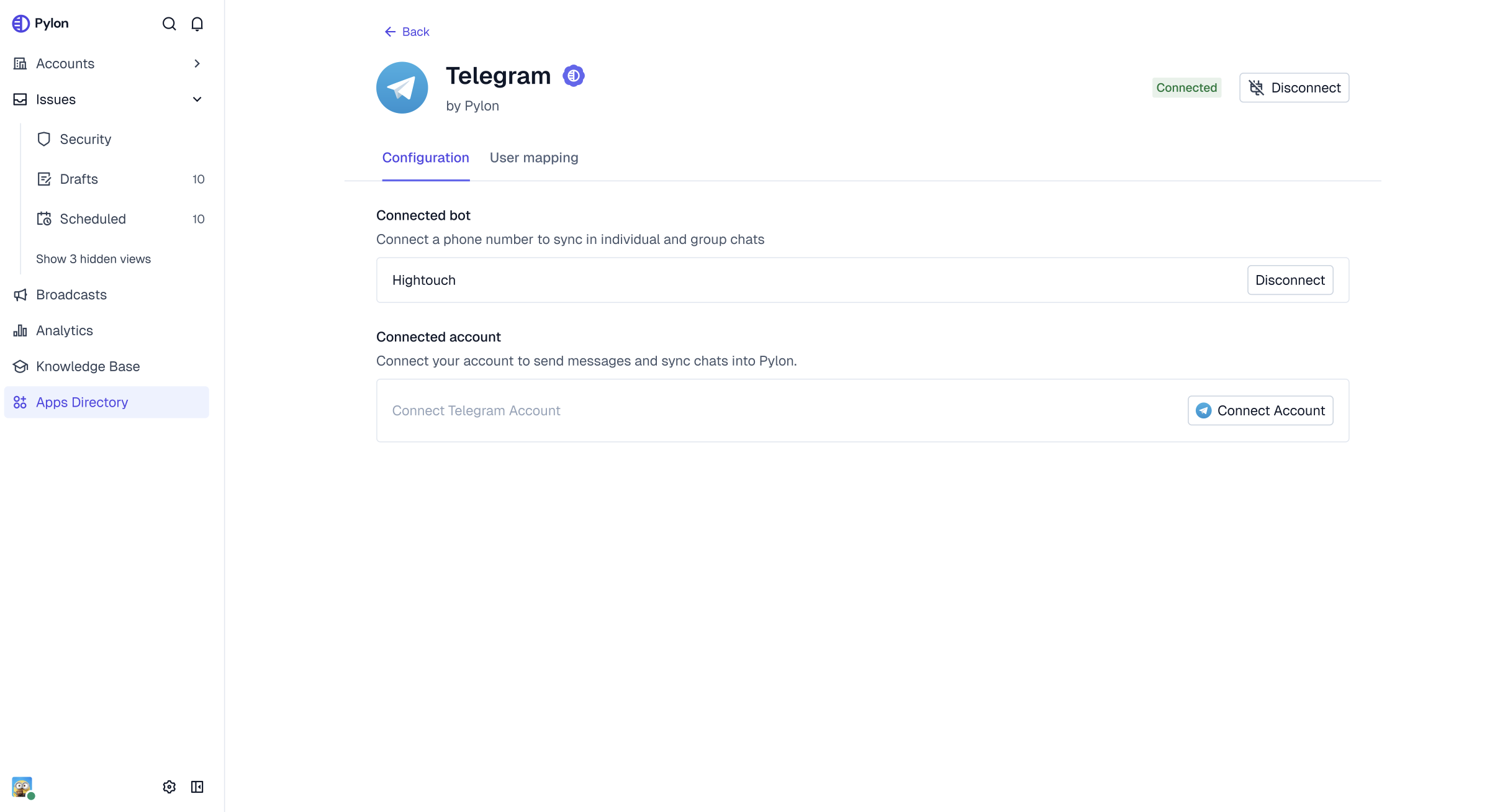 Connect Pylon to Telegram to create issues from Telegram conversations