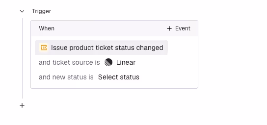 Product integration sources (Linear, Jira, etc.) added to "Last Message Source" trigger filter