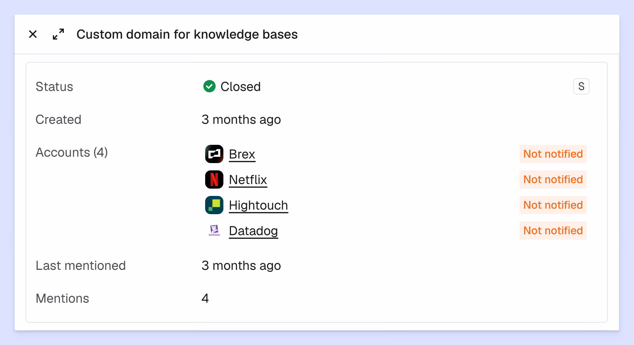 • Use this for product feedback aggregation, feature discovery, support trends, team member onboarding, customer sentiment, account summaries, and much more!